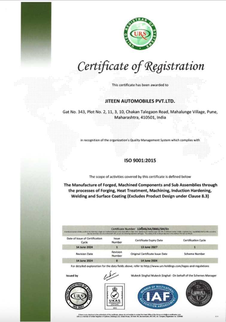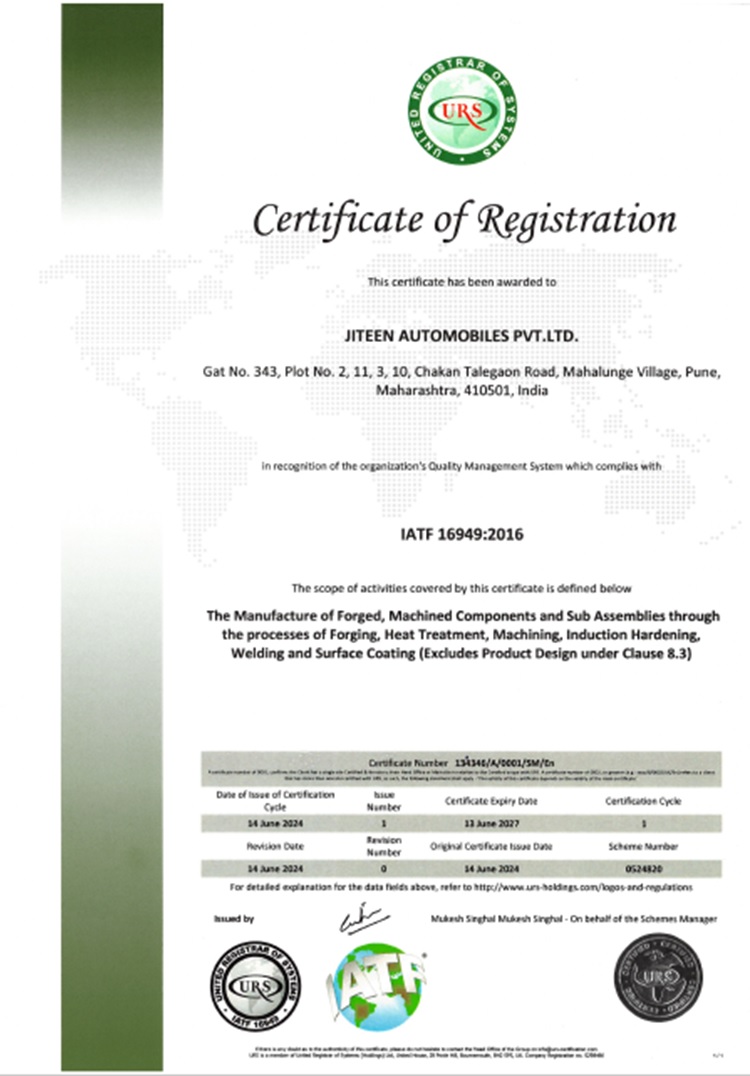 We are ISO 9001:2015 & IATF 16949:2016 Certified Company. We have best quality control processes & test facility.
